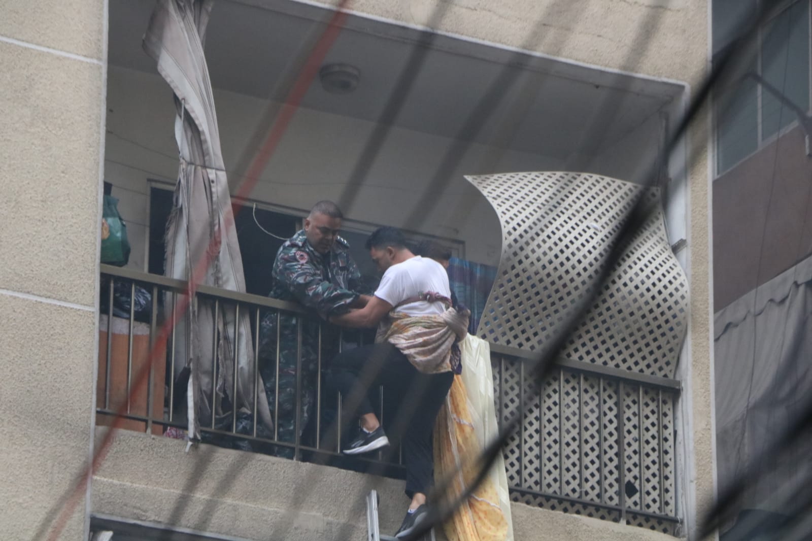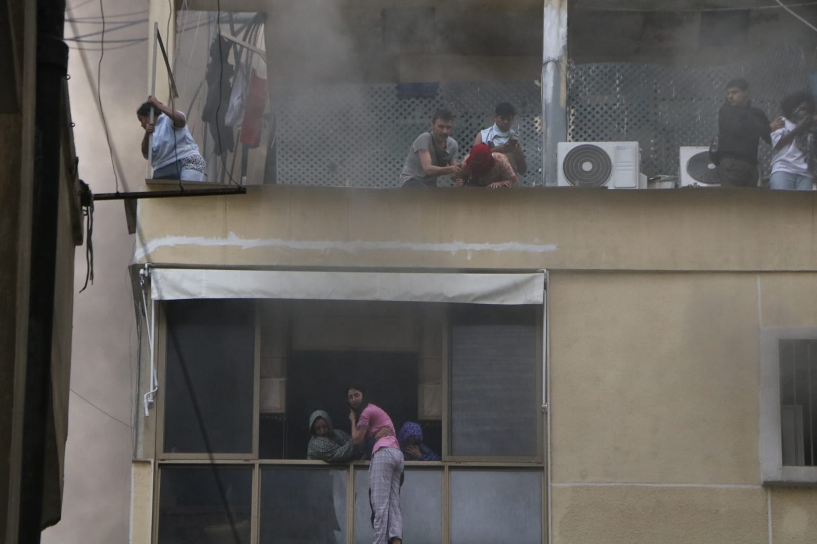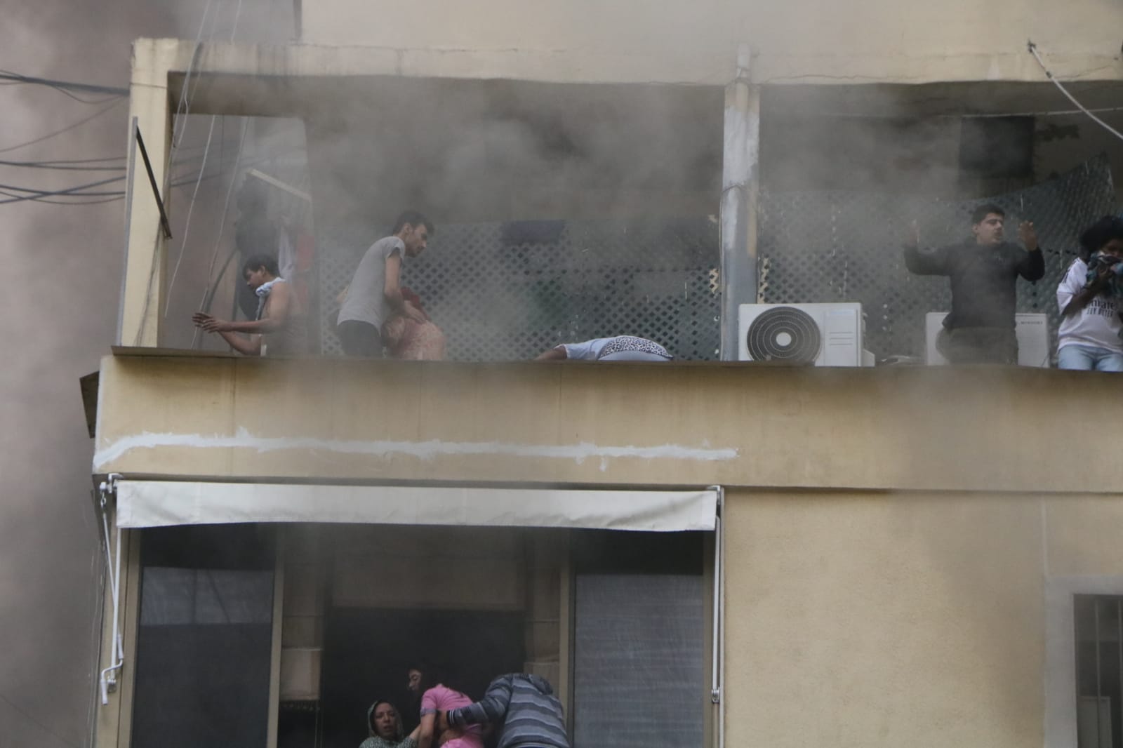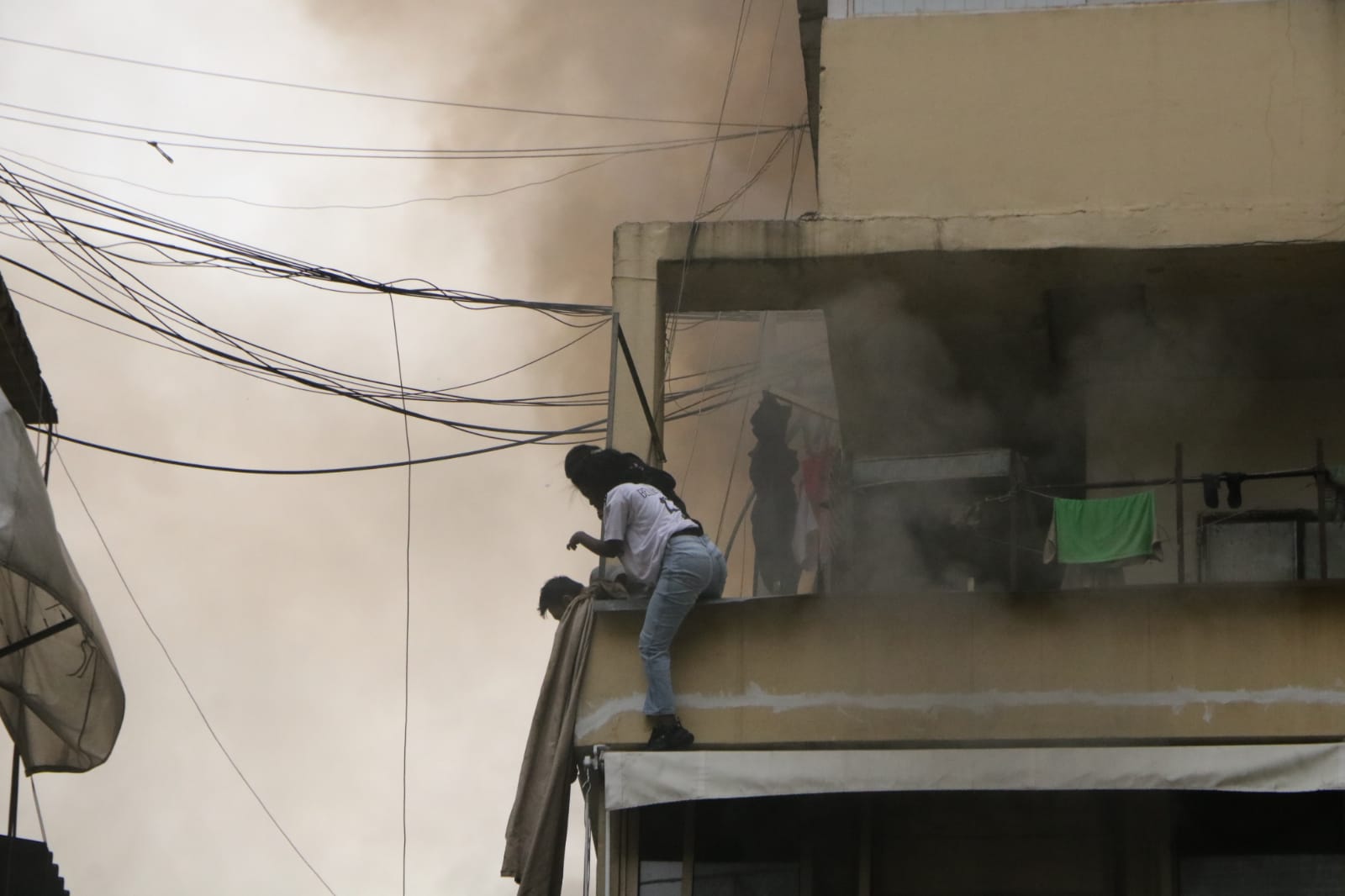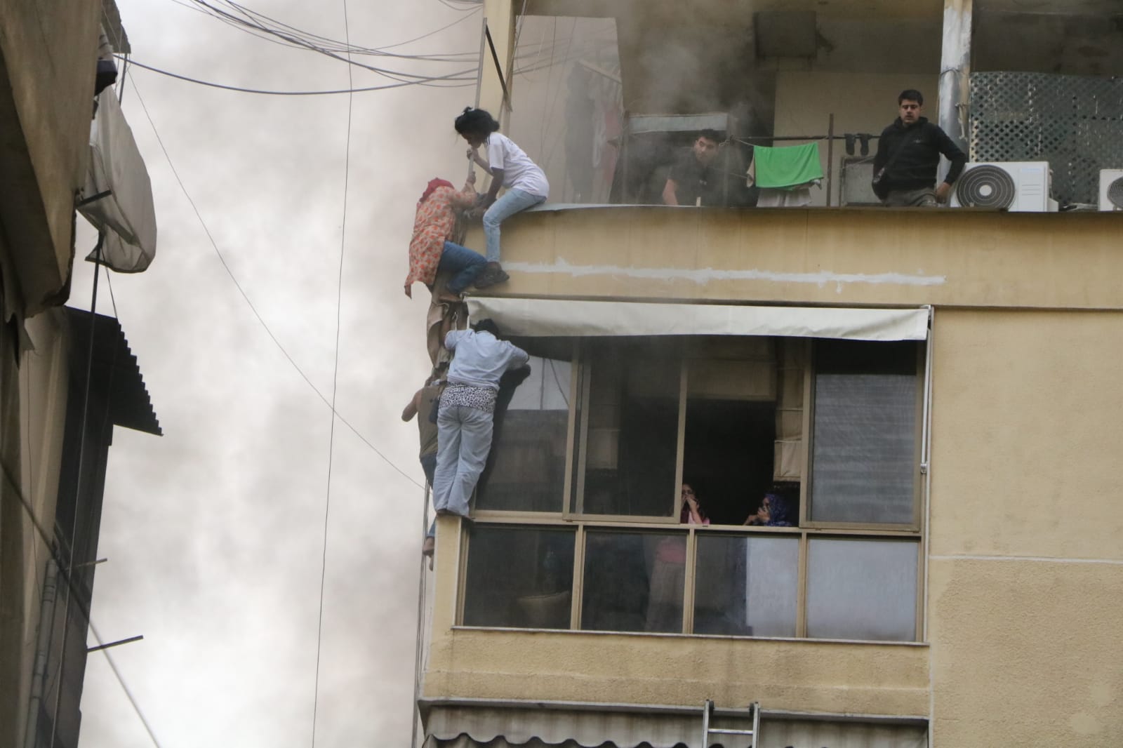 وعمد السكّان إلى مغادرة منازلهم عبر الشرفات.