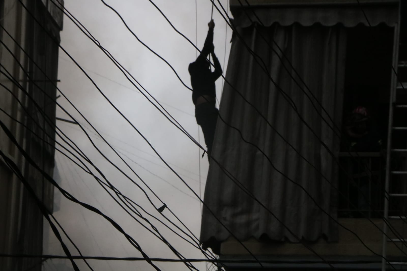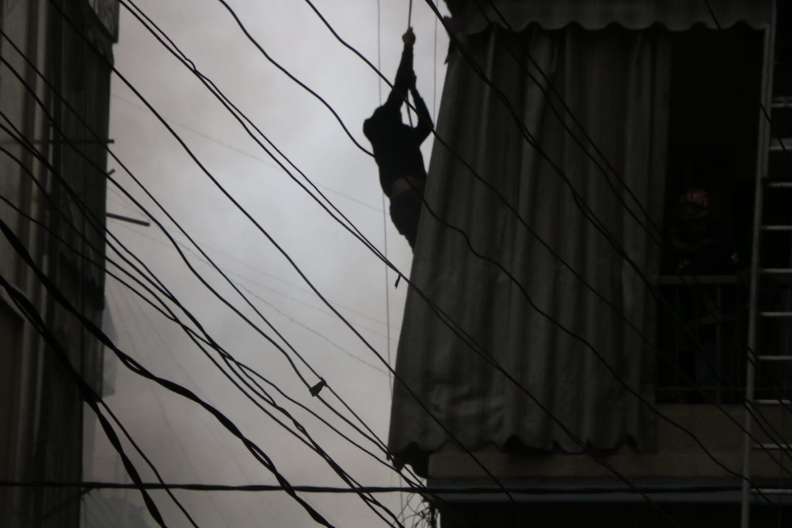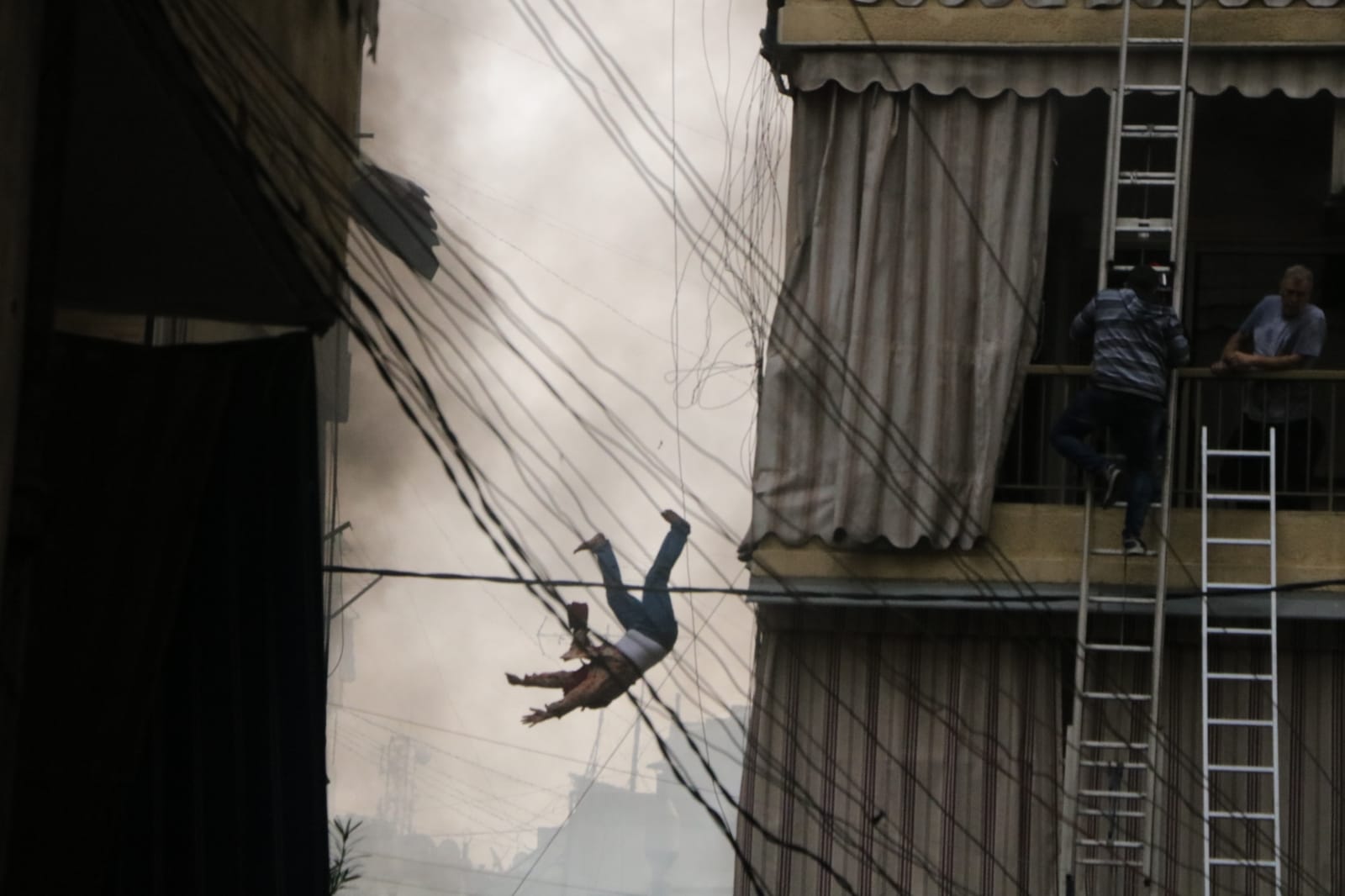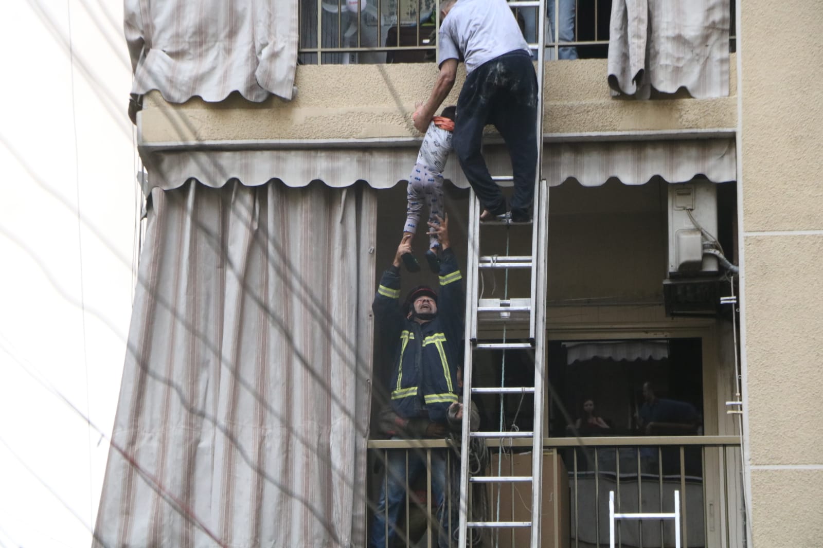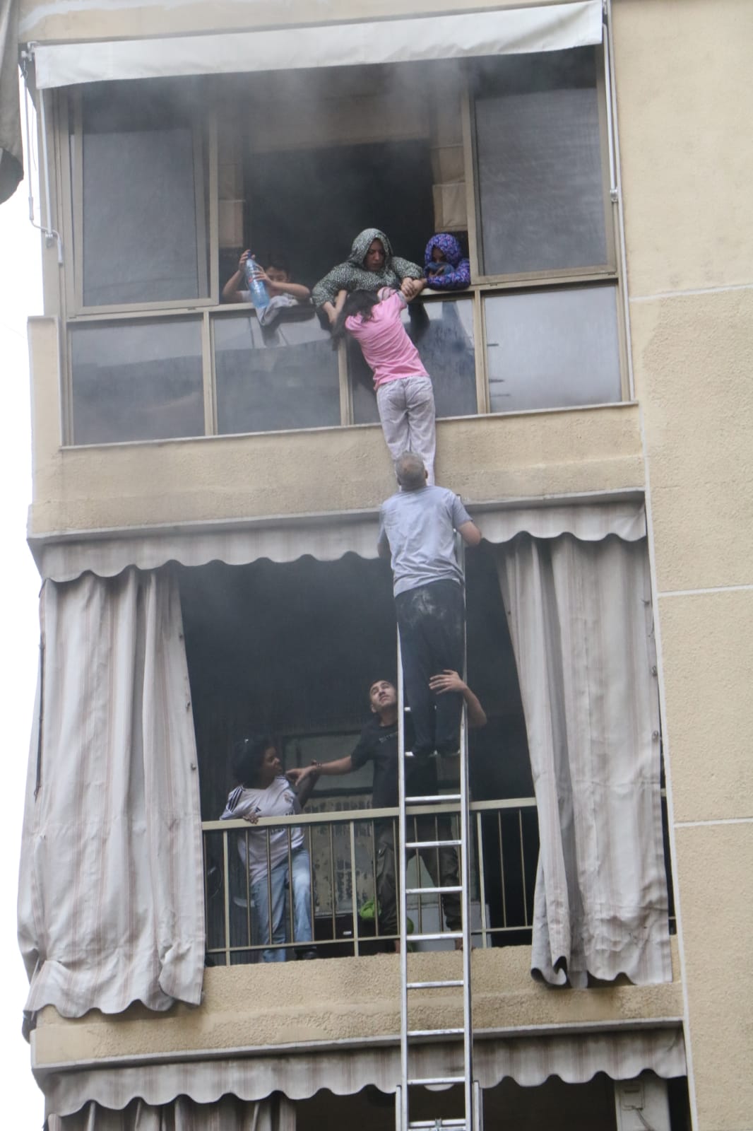 وعمد السكّان إلى مغادرة منازلهم عبر الشرفات.