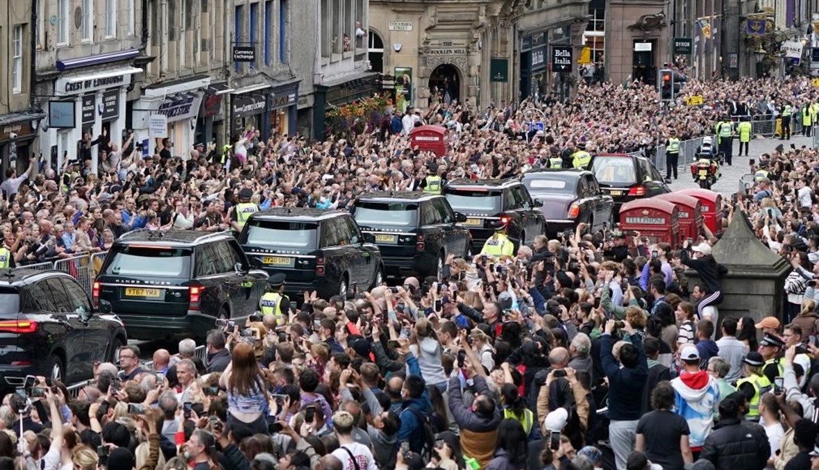 وصل نعش الملكة إليزابيث إلى إدنبره، اليوم الأحد، بعد ست ساعات من مغادرته منزلها الصيفي في المرتفعات الاسكتلندية مرورا بعشرات الآلاف الذين اصطفوا على جوانب الطرق والشوارع لتوديع الملكة الراحلة، حيث التزم كثير منهم الصمت وأخذ بعضهم يصفق ويهتف وانفجر البعض الآخر في البكاء.