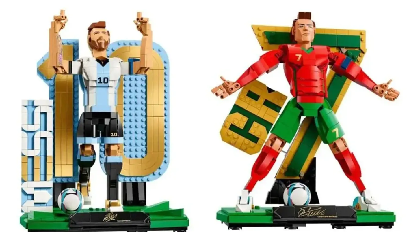 The company has created a total of seven sets, four of which feature letter-shaped designs representing each football player and are priced at 29 dollars, along with display models of Ronaldo and Messi priced at 79 dollars.
