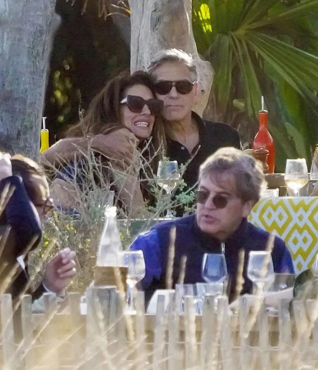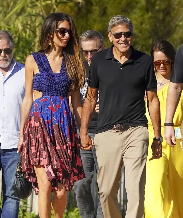 أظهر كل من أمل وجورج مودتهما لبعضهما البعض بينما كانا يمشيان إلى جانب المطعم متشابكي الأيدي. وعند طاولتهما، عانقت أمل زوجها، بينما لفّ جورج ذراعه حولها ليُبقيها قريبة منه.
