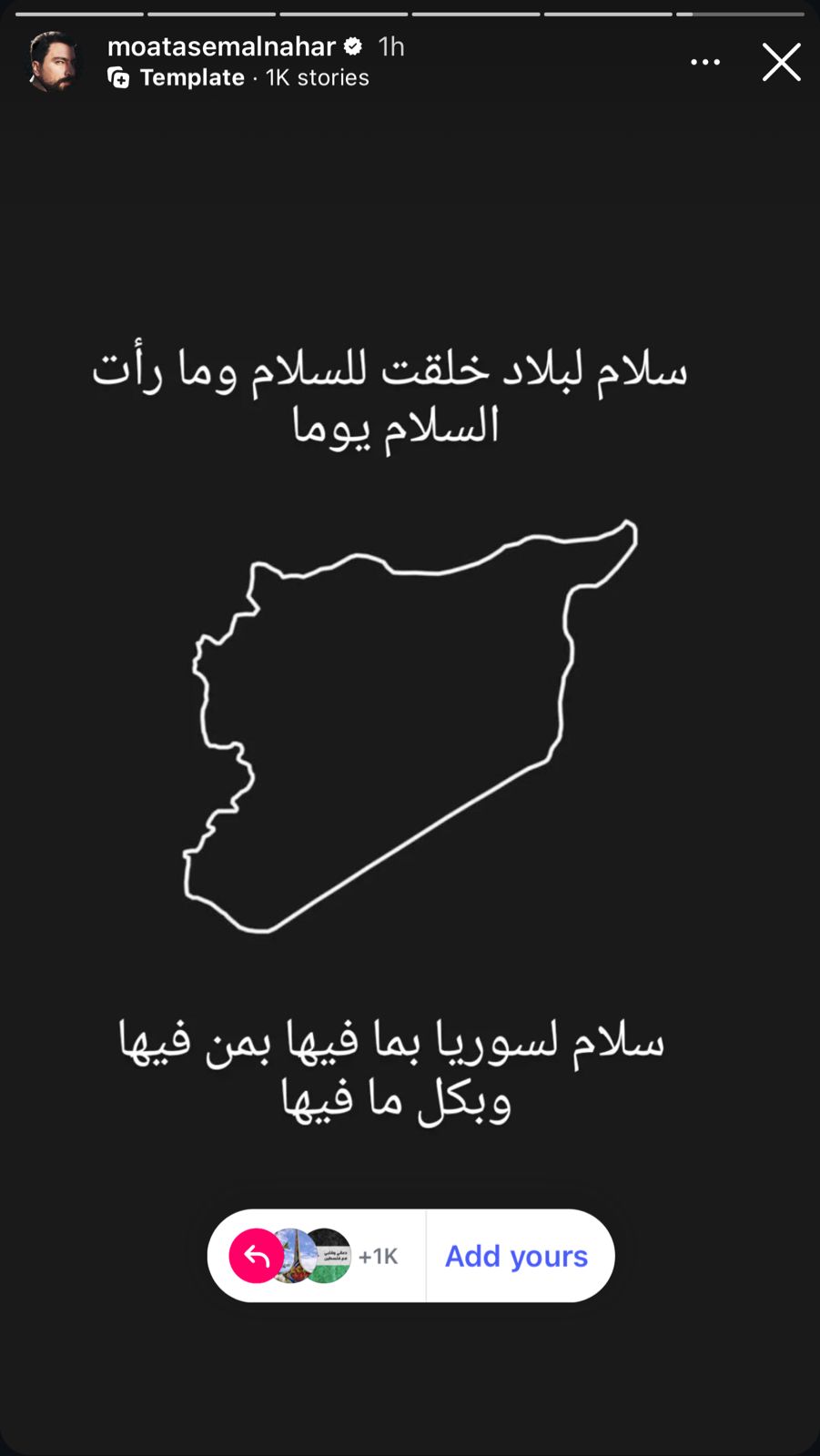 وأضاف عبد السلام: "أنا قلبي دائماً مع الشام، لكن اليوم وأنا أسير بشوارعها، أحسست بشيء أكبر، شعور مخلط بين الحزن على كل شيء مررنا فيه، وبين الفخر بهذا الشعب الذي لا يعلم معنى الاستسلام. في ألم، لكن في قوة. في تعب، لكن في إرادة. هذه الشام، هذه الروح التي تنبض رغم كل الجروح".